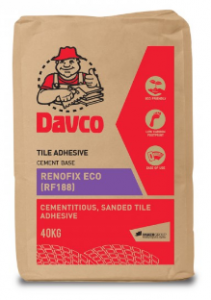 Davco RenoFix ECO (RF 188) is a cementitious, sanded tile adhesive that is ideal for the installation of ceramic and homogeneous tiles onto floor and wall.